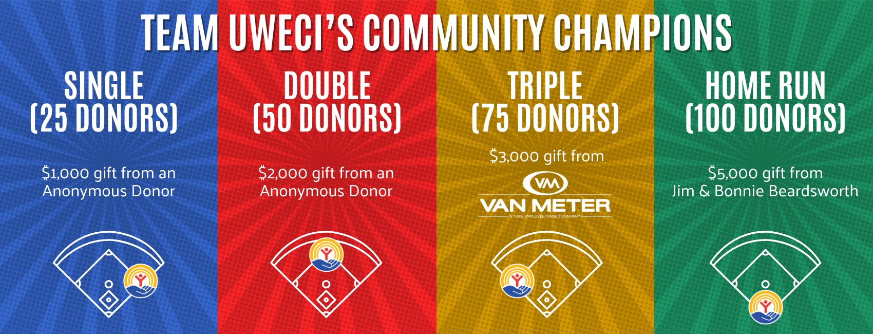 That’s why, now more than ever, UWECI is asking you to step up to the plate and join our team, as we round the bases to a thriving community with our Spring fundraising initiative – Be a Community Champion.