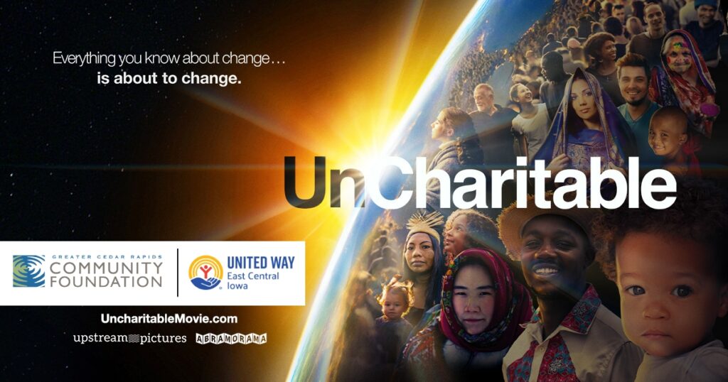 On Monday, December 1, the Greater Cedar Rapids Community Foundation’s Nonprofit Network and United Way of East Central Iowa will host three free screenings of UnCharitable as an early Giving Tuesday event. The documentary dives into the realities of philanthropy and introduces a new way of giving. This is the third local UnCharitable screening and coincides with #GivingTuesday, a global day of encouraging generosity.